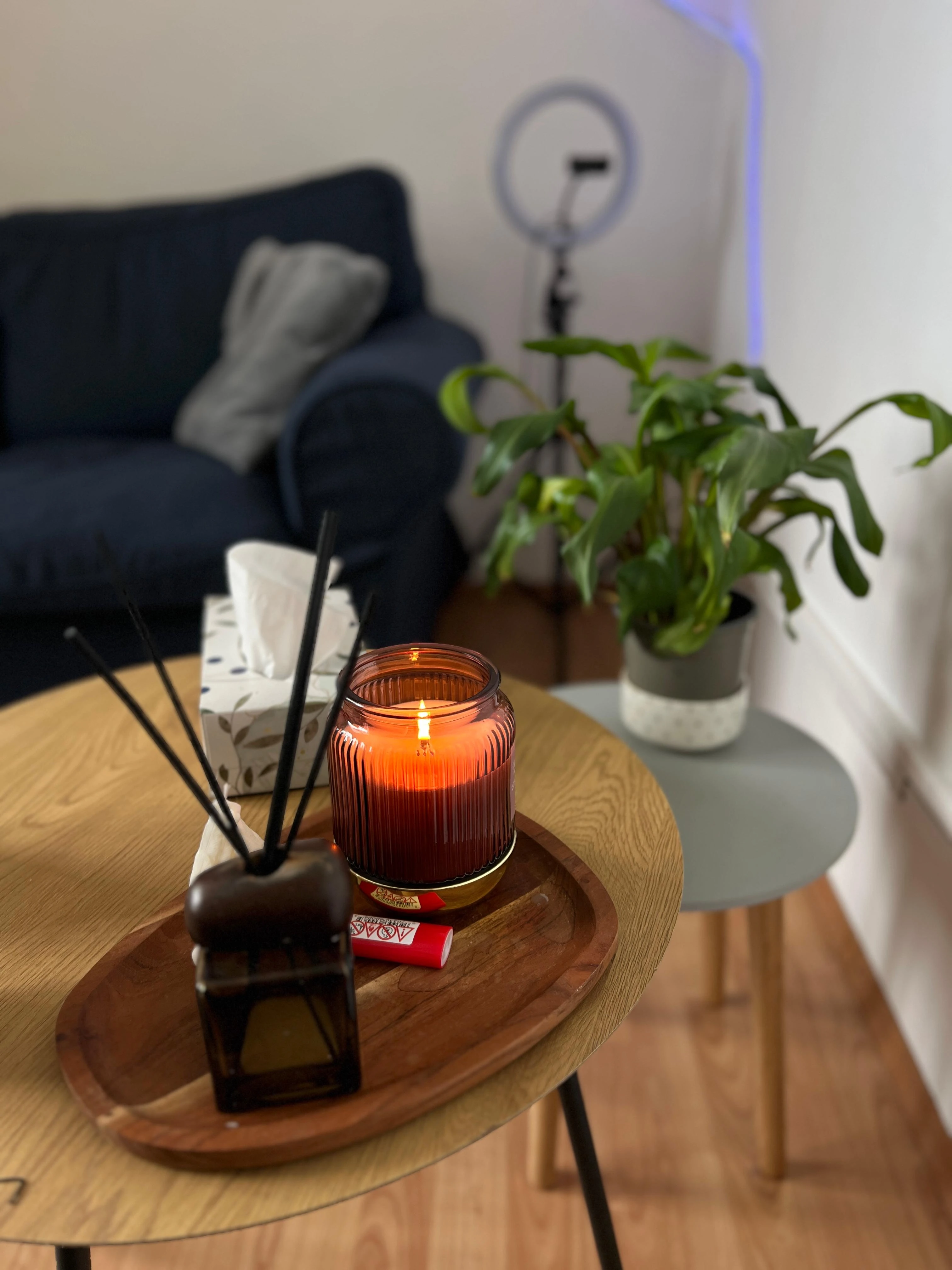 Lumânările parfumate, lumina caldă și atmosfera relaxată creează un cadru în care te poți simți în largul tău.